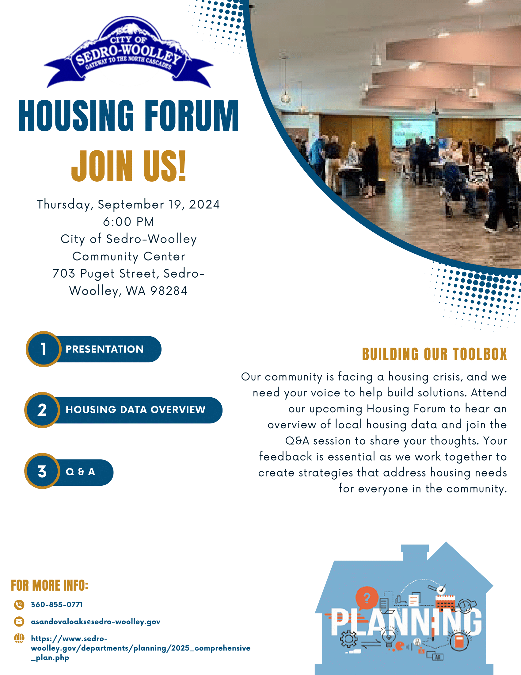 Attend the Housing Forum to hear an overview of local housing data and join the Q&A session to share your thoughts. Your feedback is essential as we work together to create strategies that address housing needs for everyone in the community.